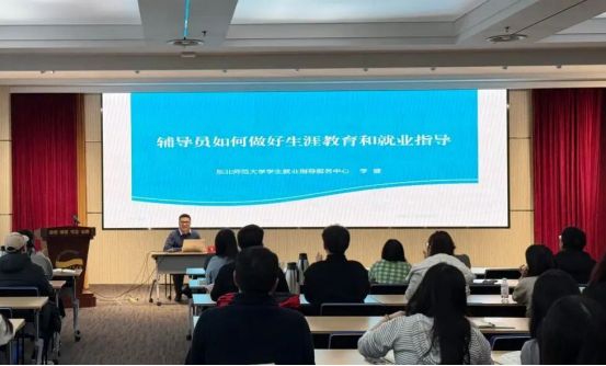 为进一步深化辅导员对高校毕业生就业工作的规律性认识,不断提升辅导员大学生生涯规划和就业创业指导能力,1月16日下午,学生工作处举办辅导员发展论坛(第七期)——辅导员如何做好生涯教育和就业指导。论坛邀请东北师范大学学生就业指导服务中心副主任李健做专题报告,各学院辅导员代表共120人参加论坛,学生工作处副处长葛晓茜主持。